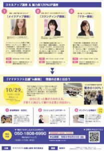 メイクアップ講座、ブランディング講座、マネー講座からなる「スキルアップ講座&魅力度120%UP講座」を実施。