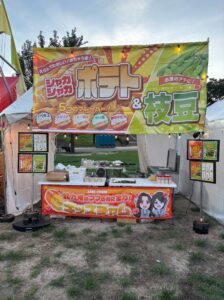 また、弊社では10日間、ポテトと枝豆を販売しました。多くのお客様にご来場いただき、盛況のうちに販売を行うことができました。