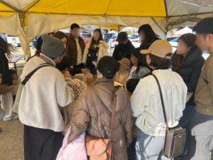 もち&お菓子まきでは、新春のお祝いムードに合わせて、いつものお菓子まきに加え「もち」も多数投入し、両日とも開始前から多くの来場者が集まる人気企画となりました。